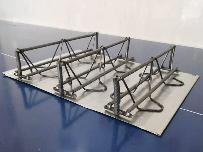 ??????鋼筋桁架樓承板是將樓板中鋼筋在工廠加工成鋼筋桁架,并將鋼筋桁架與底模連接成一體的組合樓承板。根據(jù)所使用的底模,鋼筋桁架樓承板分為TD I型和TD II 型兩種類型。I 型底模的縱向肋節(jié)目呈倒“ V ”字型,肋高為4mm,其底模寬度為576 mm;II型底模的縱向肋截面呈倒“V”字型,肋高為2mm,其底模寬度為600mm。